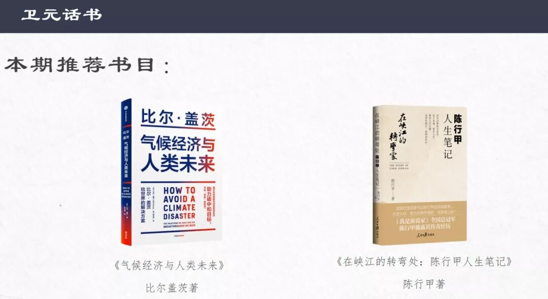 接下來的衛元話書環節,張衛元董事長首先向回盛書友們推薦近期閱讀的書目。