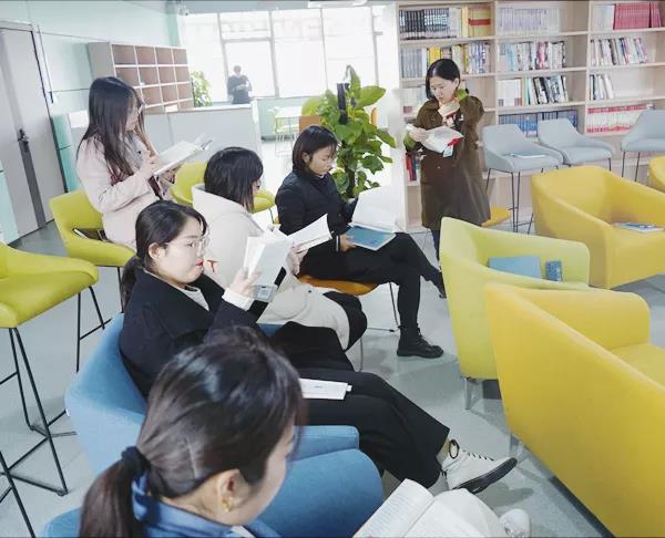 回盛智能化工廠圖書室里,一首首輕快明朗的旋律與書本相約,喚醒了大家對文字的記憶,重新發(fā)現(xiàn)字里行間的雋永之美。書架前,書友們輕撫各色各樣散發(fā)著油墨香氣的書籍,暢游辭海,細品讀書的滋味。