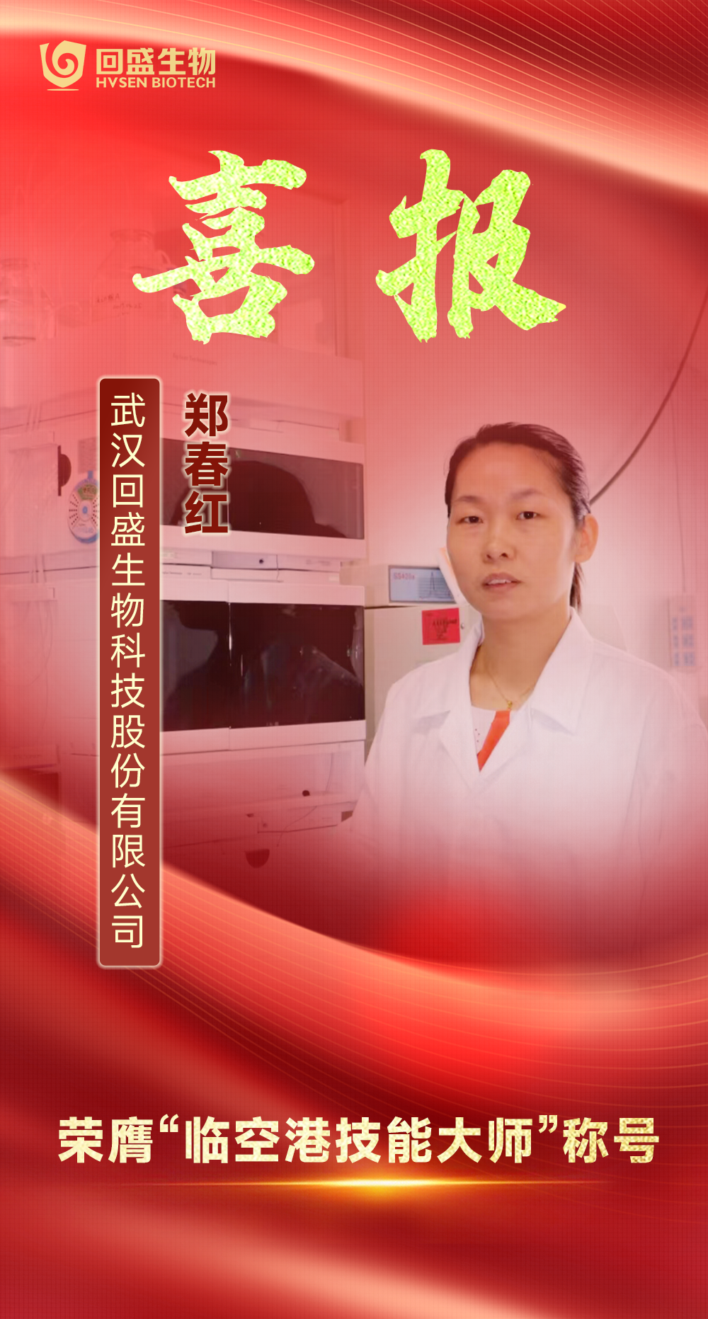 喜訊!我司員工鄭春紅榮膺武漢臨空港經開區“技能大師”稱號
